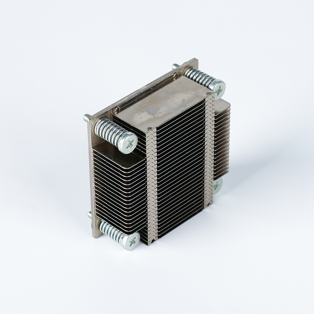 冲压FIN片与金属铝板或者铜板焊接组合一起的散热模组通常使用在工业控制主机,一体机等设备上,解决小功率处理器散热问题,具有导热散热稳定性高,成本低等优点。